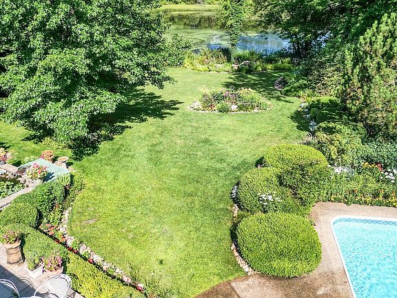The main level features two elegant en suite bedrooms, a charming formal dining room, and a well-appointed kitchen. Enjoy expansive views from the large living and family rooms, which overlook beautifully landscaped gardens, a sparkling in-ground pool, a tranquil koi pond, and the serene lake. The lower level offers ample storage, a guest bedroom, and a full bathroom, providing convenience and versatility. The home's exterior seamlessly blends with its natural surroundings and includes a spacious 3-car garage. Additionally, a 1,200 sq. ft. pole barn is available for all your recreational equipment and storage needs.