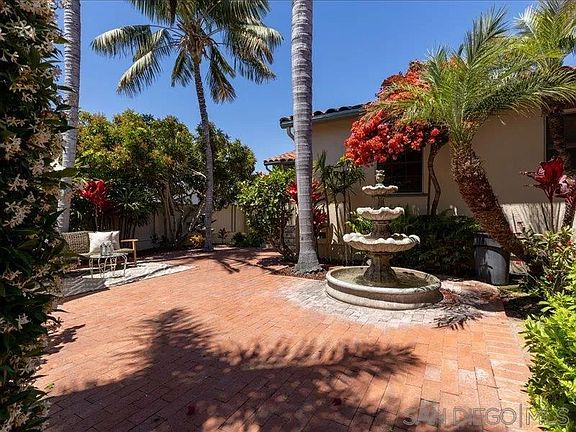 This lovely single-story Spanish style 3 bedroom 3.5 bath home with a separate entry studio apartment is located on a peaceful canyon in North Mission Hills. The circular driveway welcomes you into a tropical paradise gated courtyard with fountain. The elegant open floor plan of this light and bright home makes it wonderful for families and entertaining. The spacious living room has a coved ceiling, fireplace and double french doors opening to a wonderful deck with canyon view and view towards the ocean.