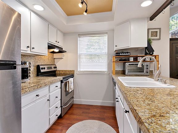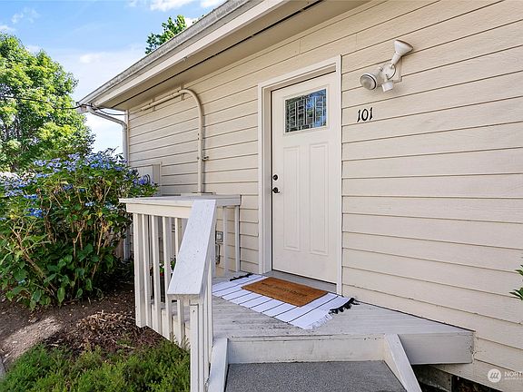 Welcoming main floor, end unit condo across the street from Roosevelt Park. Soak up all the natural light in this bright and open floor plan. Vaulted ceilings in the living space help this home live large. Shared, but mostly unused fully fenced yard space is a rare benefit to this condo. No need to worry about parking, the condo comes with a dedicated parking spot. Enjoy the proximity to downtown, Barkley Village and Whatcom Falls Park. Relaxed HOA with no pet restrictions, this is a great entry to home ownership or a fantastic investment opportunity.