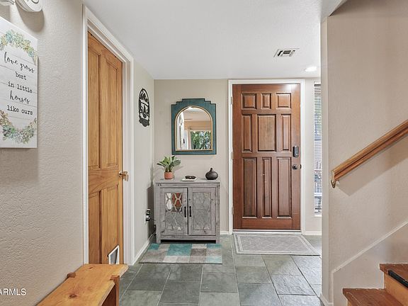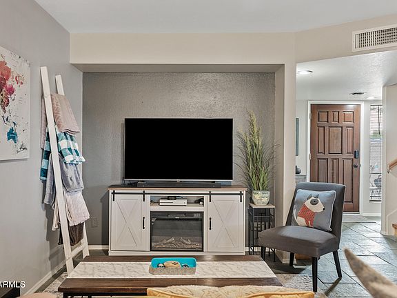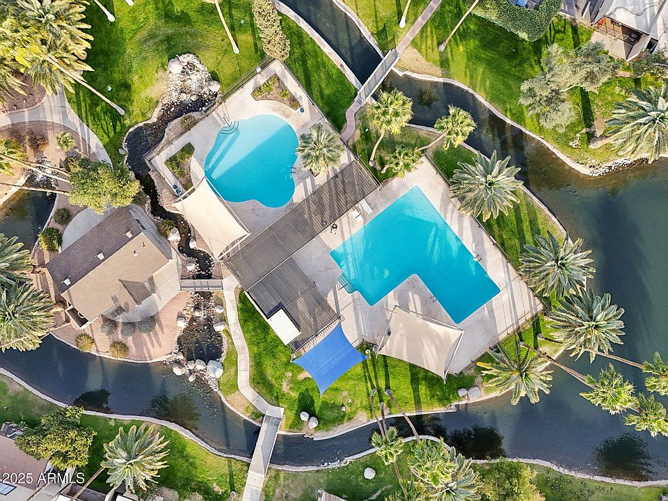 Discover the ultimate outdoor lifestyle in this 3-bedroom, 2.5-bath waterfront home in Dobson Ranch, a lake and golf community. Surrounded by tree-lined paths, green spaces, and shimmering lakes, this oasis blends relaxation and convenience. Pick fresh lemons from the privacy of your owner's suite balcony--a rare feature! Enjoy a BRAND NEW AIR CONDITIONER, multiple pools, fitness classes, and nearby golfing. This dog-friendly neighborhood offers shaded paths, parks, and playgrounds. Just 15 minutes from ASU, with quick access to highways, shopping, and dining. Schedule your showing today!