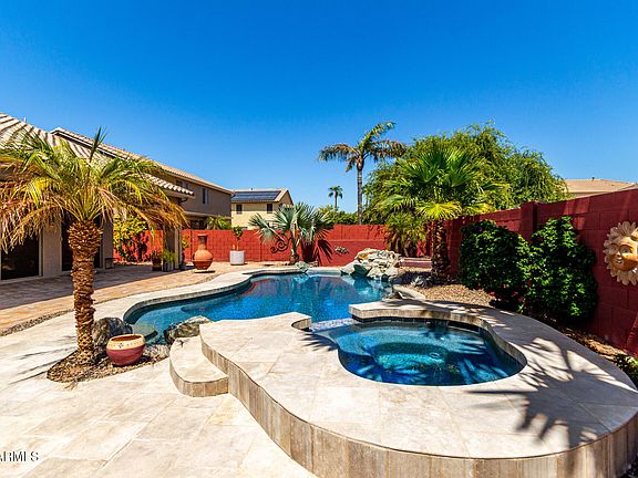 Bring the RV! This is an Executive property in Deer Valley Estates. Large office/4th BR with 8 foot double door entry just needs closet or wardrobe,Split floor plan 2.5 baths, airy high ceilings T/O, beautiful wood floor in living and dining area.Fresh interior paint new quartz counter tops in kitchen and baths new faucets and valves. Primary is very large, with on suite featuring separate tub shower, double sink and custom closet private access to back yard. with huge covered patio,sparkling pool with soothing water fall and built in spa. Plenty of hard scape even a custom 2 way outdoor fireplace.BIG side yard ready for your buyers RV or boat along with a 3 car garage. Trane HVAC units replaced in 2023, Better hurry this is a great home that will sell fast!