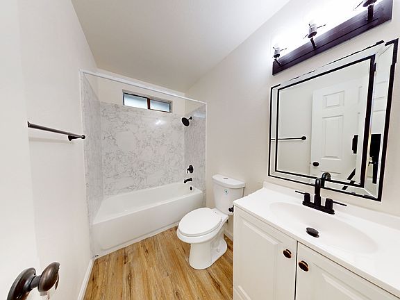 Experience modern living in this fully renovated 2 bed/1 bath home located in the desirable Lake California gated community. The home features an expansive living and dining room area with great natural lighting, a kitchen with brand new stainless steel appliances, and two spacious bedrooms with a fully renovated bathroom. Additional features include central heating and air, washer and dryer hookups, and an attached single car garage.