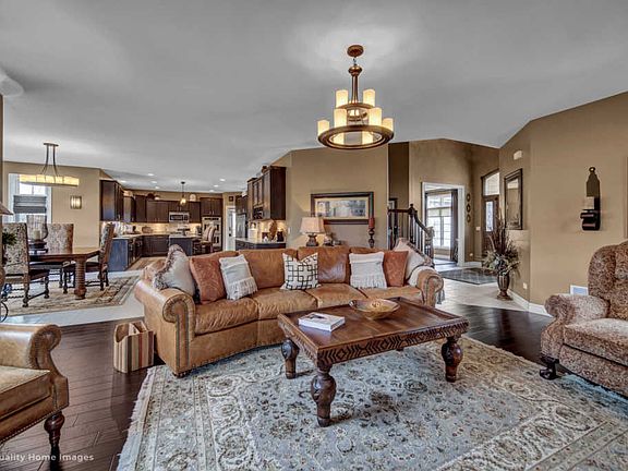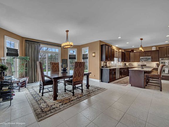 BE SURE TO WATCH VIRTUAL TOUR! Remarkable 4 bed/3.1 bath home in Misty Falls with finished basement featuring a custom bar! This home is perfect for entertaining. Large island, eating area table space, built in buffet, granite countertops and stainless steel appliances all in kitchen. Hardwood floors throughout formal living & dining room as well as the inviting family room with fireplace. Sliding patio door opens out onto new patio pavers that extend all the way onto the side of the house. The backyard is adjacent to small pond and creates the perfect scene to just relax but an even better spot to host a summer BBQ! 2 story foyer with Oak staircase. Master suite features a vaulted ceiling, crown molding & 5 inch baseboards, his and her sinks, Jacuzzi, separate shower & private toilet room. All 4 bedrooms have walk in closets! Plenty of more closet/storage space found in the basement. Additionally, basement features home office, bathroom with shower, bar area & second family room all with 9" ceilings. Laundry room and mud room found on first floor. 3 car garage with new garage door operating system. This home has been extremely well cared for. You won?t be disappointed!