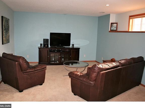 If you are looking for a great, spacious and OPEN rambler in Upper North Mankato, here it is. This 4 bedroom, 3 bath home is located on a large (.36 acre) lot with a spacious 20x16 deck off back and charming covered porch out front. Main floor offers over 1500 sq feet and has an open living, dining, and kitchen- all under a vaulted ceiling. Living room is bright and has new carpet, there is a gas fireplace with slate stone surround between living room and dining room. Dining room has new laminate wood floors and patio doors out back. It is also open to the kitchen, where the flooring continues thought out. Kitchen was recently was upgraded in the past few months with granite counter tops, tile back splash, crown molding on top of the cabinets and there is a center island that is perfectly placed for additional seating for entertaining or always welcomed additional prep space for cooking. The back entry is off the 3 car garage (third stall, on left, goes back 28 ft and double goes back 24 ft. In total is it 32 ft across and 808 sq. ft.) Back entry has hooks for jackets, space for shoes, along with the main floor laundry!! Down the hall there is a full guest bath, a guest bedroom with double door closet, and the master bedroom which has a walk in closet and private full en-suite bathroom. Downstairs offers tall ceilings and a great space for watching movies with the surround sound wiring in place. There is also space for a play area or could be used as office space. There are 2 more bedrooms in the basement- both are large and offer nice closet space (one has 2 closets and built ins!). The 3rd full bathroom is in the lower level as well. There are great built in shelving for storage in the utility and storage room. Home has a sump pump that is equipped with a backup- just in case. The roof was replaced in 2010- the same year the deck was added to the home. It is evident that this home has been well taken care of and is waiting for new owners today.