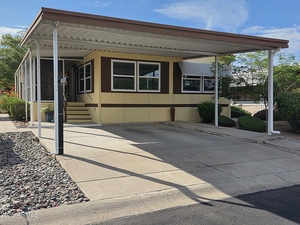 Age-Restricted 55+ Boulder Ridge Community nested a beautful mountain range with exceptional boulders and views. Well-cared-for 1993 Palm Harbor 2 bed/2 bath home with vaulted ceilings, double-pane windows (2016), upgraded copper plumbing (2019), AC heat pump (2014), water heater (2021), new shower in primary bath (2024), wood laminate flooring, and interior paint (2023). Features a bright kitchen with appliances, living/dining great room, screened deck, storage shed, and 2-car covered parking. Community offers 2 heated pools and spa, club house, pool tables, pickelball, activities and so much more. Lot rent $915 + approx. $70 utilities. Must qualify with the park office. No rentals.
