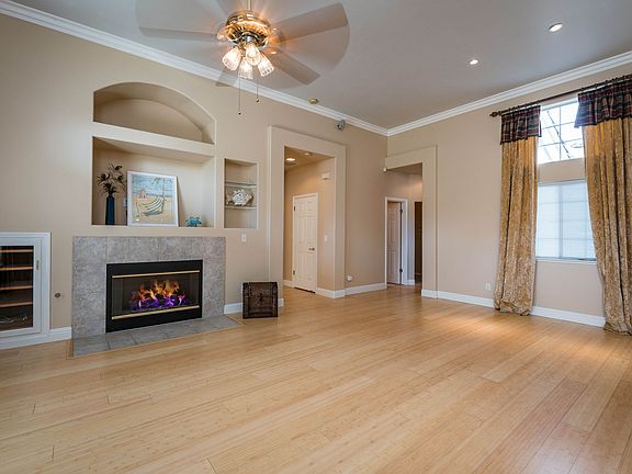 This astounding family home is truly out of this world! The residence features an expanded floor design with a great deal of space. The freshly painted interior and modern plank style flooring show nicely.The kitchen has been upgraded with eye catching designer look counters and backsplash. The master suite has a with separate entrance to the pool and spa. The walk in custom designed closet, spa tub, divided showers and dual sinks make for a perfect master retreat. Secondary bedrooms and bathroom are roomy and conveniently located on the opposite side of the home. Excellent location is close to schools, parks, walking paths and bike trails. Roomy 3 bay garage and RV parking for family vehicles and toys. Solar system is leased.