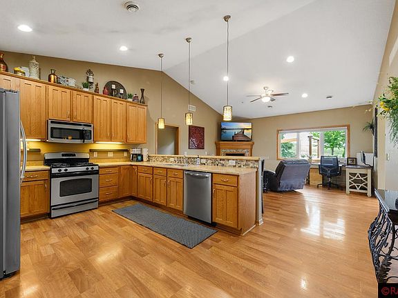 Experience the perfect blend of comfort and style in this charming 3-bedroom, 2-bathroom home in upper North Mankato. Upon entering, you'll be greeted by an open floor plan with vaulted ceilings, creating a spacious and inviting atmosphere. Just off the front entryway, you'll find two bedrooms and a conveniently located full bath. The expansive kitchen features numerous cabinets for ample storage and a breakfast bar that seats up to six, making it an ideal space for entertaining and family meals. The cozy living room, complete with a gas fireplace, is perfect for relaxing evenings. The primary bedroom is generously sized, offering a private full bathroom with heated floors, walk-in closet, and laundry room, ensuring comfort and convenience. Additionally, a sunroom at the back of the house leads out to the deck and patio, providing a great space for outdoor enjoyment. The oversized two-stall garage is both heated and insulated, equipped with a floor drain, making it practical for all seasons. Located across the street from Benson Park, you'll have easy access to walking trails and outdoor activities. Don't miss out on this beautiful home—call today to schedule a tour!