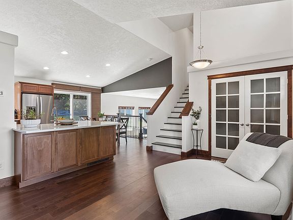 Stunning Golden Hills home on a rare double-lot (.4 acres +/-). Beauty abounds in this meticulously kept and upgraded one-owner home! Adorable front porch provides the perfect place for watching sunsets. Formal living room opens to a spacious kitchen with huge quartz island, farmhouse sink, gas range, all appliances stay. Overlook the family room with gas fireplace and built-in bookcases or access the private landscaped backyard featuring a multi-level patio, gas hook-up for BBQ and storage shed. Engineered hardwoods throughout the main living spaces. Main floor laundry and half bath as well. Upstairs you will find a primary bedroom including a walk-in closet and ensuite bathroom. Additional 3 well-appointed bedrooms and bathroom. Unfinished basement with 2 egress windows could be converted into a rec-room or additional bedroom(s). High efficiency furnace, built-in security system, sprinkler system, oversized 3 car garage including overheard storage shelving complete this one-of-a-kind home!