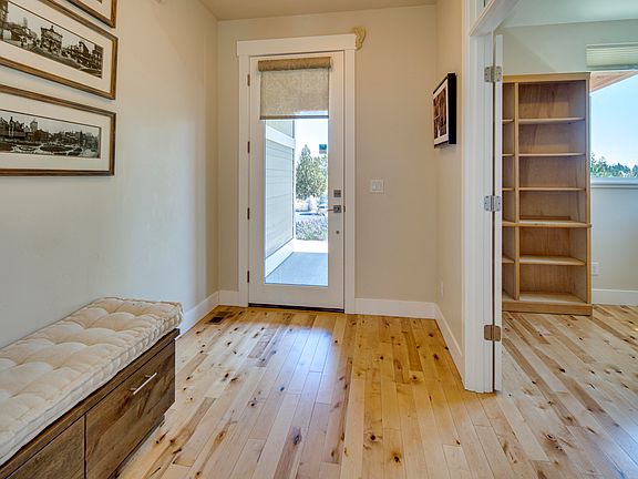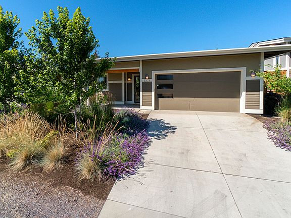 This sunny, Frank Lloyd Wright Usonian-inspired home offers the clean lines and mid-century style you'd expect from the famed architect. Just .17 miles from the river trail & walking distance to downtown, this single-level Earth Advantage home by Arbor Builders offers a location in Bend that can't be beat. Enjoy hdwd flooring, clerestory windows, & high ceilings throughout. Great room features 13.5ft ceilings & a wall of windows w/ sliders to patio. The open kitchen includes an island w/ bkfst bar that's perfect for entertaining. Chefs will enjoy the KitchenAid 4pc stainless steel appliance pkg, porcelain countertops, knotty alder cabinets & large pantry. The Primary BD has patio access & a W/I closet, & includes a generous bathroom w/ porcelain tiled shower w/ hinged glass shower doors, custom pebbled shower floor, & dbl vanity. This home features 2 guest BD w/ shared bath & an office. Outside, find a lrg landscaped, fenced backyard w/ paved patio & firepit.