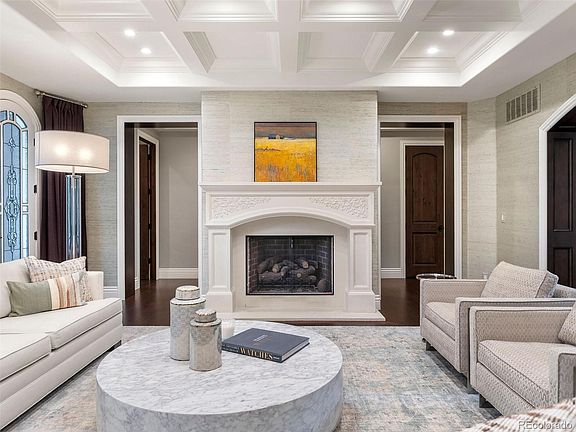 - Description: Luxurious Primary Suite With Silk And Sisal Wallpaper, Private Balcony, Adjacent Office, Gas Fireplace, And En-Suite Spa Like Bath