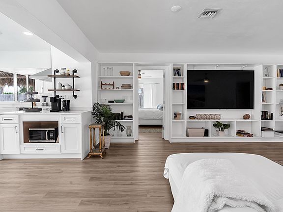 Fully Furnished and Equipped waterfront home and available for annual rental. Heated Pool and Spa and lounge chairs. Outdoor Kitchen with refrigerators, sink and grill. Tikihut offers shade over the outdoor sofas. 3 bedrooms and 3 bathrooms plus bonus room with sleeper sofa. Plenty of parking. Dock nor garage not included in rental.