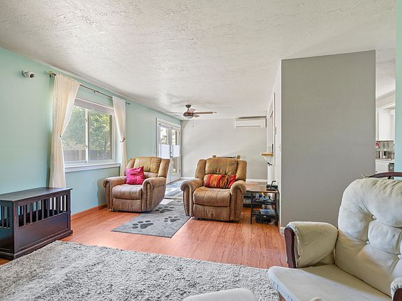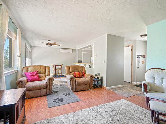 Inside you'll find an open kitchen with a breakfast bar and mini split ductless heat/AC in the main living space. Recent updates include a new garage door, asphalt in the driveway, as well as all new windows, new blinds, ceiling fans & a new dishwasher. A new water heater was installed in 2018. All TVs and mounts will be staying with the home!