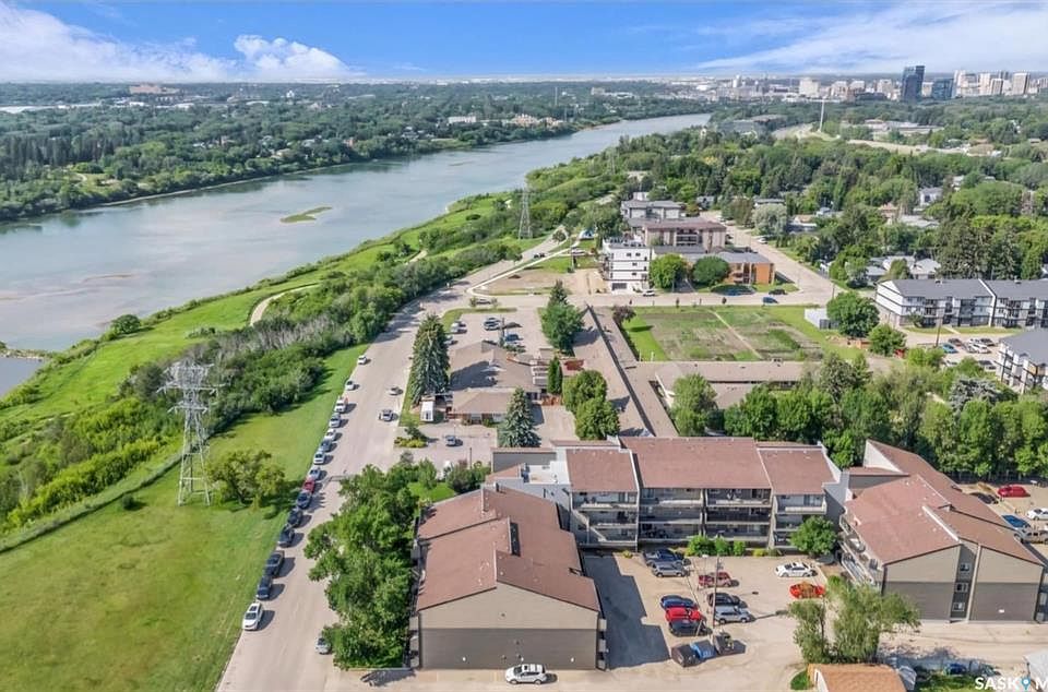 Welcome to Riverstone, located at 2233 St. Henry Ave., a residence where the charm of riverfront living seamlessly blends with everyday convenience. This exceptional two-bedroom, one-bathroom unit, spanning 775 square feet, offers a recently renovated unit that shows pride of ownership throughout. Carpet and kitchen flooring have been upgraded, and appliances all new within the past 2 years. Granite counters, floating wall shelves, and beautifully upgraded light fixtures throughout. Riverstone offers a remarkable view of the South Saskatchewan River from the front entrance and provides unparalleled access to Saskatoon's finest outdoor recreational areas. The new owner will find themselves just a short distance from Diefenbaker Park, disc golf facilities, scenic river trails, Optimist Hill, and Prairieland Park, creating an ideal environment for those who appreciate nature and adventure. If you have a big dog, take them with you as this property allows 2-pets any size, with minimal restrictions. Large dogs welcome which is an extremely rare find. We encourage you not to miss this wonderful opportunity. Quick possession available