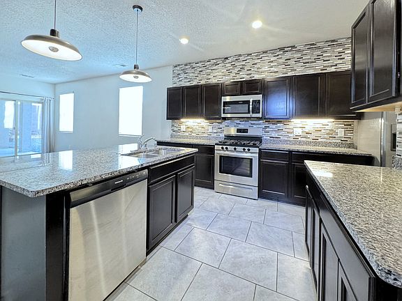 Dynamic 1-story home on extra large lot in Solcito subdivision. Enjoy holiday dinners with the whole family? You'll love the large dining room. Open concept living room/kitchen space. And wow, talk about a kitchen! Stainless steel appliances, island, under cabinet lighting, and striking tile backsplashes. Unit amenities: Ceiling fans, Dishwasher, Disposal, Double Sink Bath Vanity, Garage Parking, Kitchen Island, Laundry Hookups, Pantry, Covered Patio, Fully landscaped front & back. No in-person showings. Watch video walk-through at our web site and do a drive by. (If you are on Zillow there is also a link right there labelled "view video tour".) Available date of 9/20 is estimate. Dogs, cats possible. Check our web site for pet policies or talk with Manager before applying. Questions - give us a call. Security camera and phone app supplied. Resident pays utilities. Solar panels provide electricity at $175/mo fixed fee (which is a great deal, especially during the warmer months). Small monthly fee for Resident Benefits Program. Security deposit $3142, OR, utilize $0 Security Deposit Replacement Option for a fraction of that amount. See our web site for details (under Residents tab). Apply online at our web site only - MSProp dot com. Questions? Go to the web site and click on the RESIDENTS tab. Almost every question is answered there. (Or call us.) $50/adult app fee. Be sure to review terms, fees and features on our web site before applying. Not every site displays info the same way. M&S Property Services, LLC.