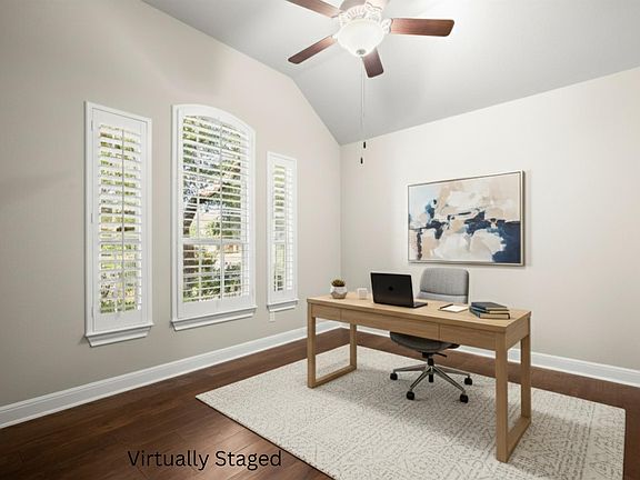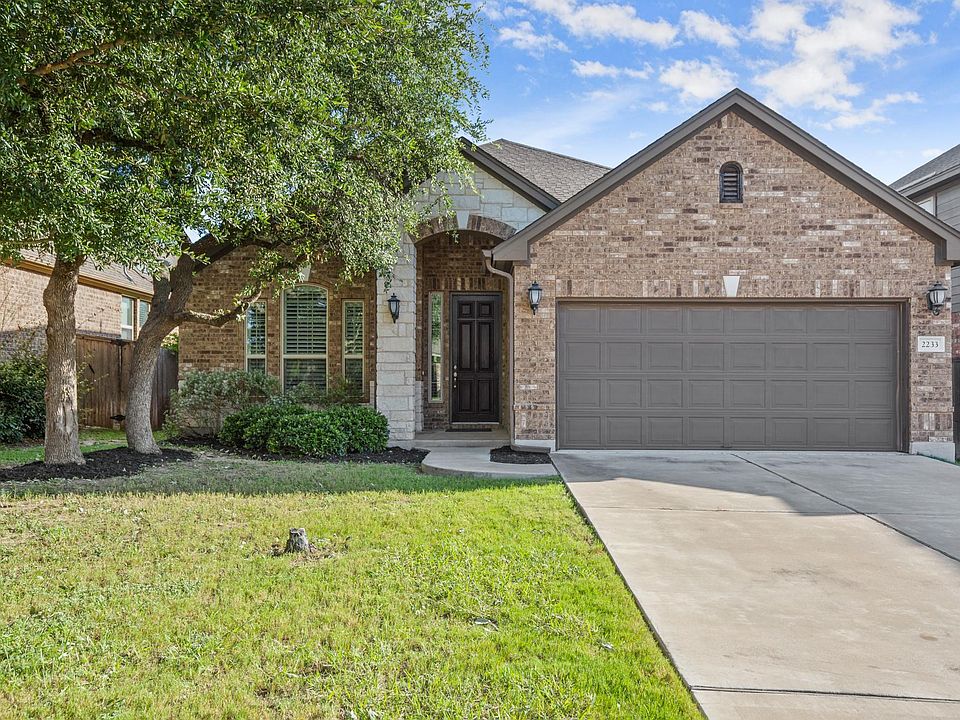 Set against a scenic greenbelt, this beautifully refreshed home offers the perfect blend of comfort, style, and privacy in a quiet Leander neighborhood. Freshly painted from top to bottom in July 2025 and featuring brand-new carpet, it feels like a breath of fresh air the moment you step inside. The spacious layout includes three bedrooms plus a dedicated office with rich hardwood floors, plantation shutters, and elegant French doors, perfect for remote work or creative space. The heart of the home is the open-concept kitchen, complete with granite countertops, dark wood cabinetry, and stainless steel appliances. It flows effortlessly into the large living and dining areas, making it easy to gather, relax, and entertain. The primary suite is a true retreat with bay windows, a large walk-in closet, and a spa-inspired bathroom with dual vanities and a walk-in shower. Additional highlights include soaring 8-foot doors, abundant closet space throughout, a covered back patio with greenbelt views, and a refrigerator that conveys with the home. Located just steps from scenic trails leading to Veterans Memorial Park and offering access to a quiet community pool, this home checks every box. Move-in ready and thoughtfully upgraded, this is the one you’ve been waiting for.