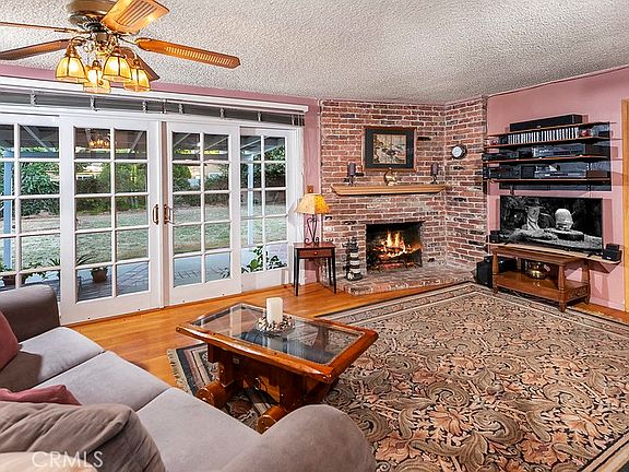 WEST HILLS ADJACENT! This great home is ideally situated on a quiet tree-lined CUL-DE SAC in one of Canoga Park’s most sought-after neighborhoods. Set on a spacious 7,946 sq. ft. lot, its lush greenery, colorful flowerbeds, brick planters, trimmed hedges, and welcoming covered brick entryway create standout curb appeal. The classic front door with glass panel insert opens to a bright and flowing, floor plan. The sun-drenched living room features a statement mullioned bay window, and rich original hardwood floors. The cook in the family will truly appreciate the thoughtfully designed galley kitchen with ceiling-height wood-grained cabinetry, tile countertops, full tile backsplash, dual-basin sink, built-in oven, gas cooktop, range hood, microwave, dishwasher, handy breakfast bar that provide a casual dining option and easy-care wood flooring. The dining room seamlessly adjoins the kitchen and with its drop-down lighting, large picture window, French door that opens to the backyard and gleaming hardwood floors, it offers an ideal setting for any occasion. The expansive family room features a lighted ceiling fan, dual sliding French doors that open to the backyard, a floor-to-ceiling raised hearth brick fireplace, and complementary original hardwood floors. The primary bedroom is highlighted a large picture window, lighted ceiling fan, built-in vanity/desk, double door closet, and gleaming hardwood floors. The en suite bathroom showcases a wood-grained vanity, framed mirrored storage, glass-enclosed step-in shower, Kohler commode and tile floors. Two additional bright and airy bedrooms offer sparkling windows that invite natural light, ample closet space to maximize storage throughout. Full guest bathroom with wood-grained vanity and Kohler® sink, mirrored sundry storage, tiled Kohler tub/shower combo and tile floors. Hallway with additional storage cabinets. Smart thermostat. Newer ducting (2019) throughout. The backyard is designed for privacy and relaxation and is also the perfect entertainment space, offering a spacious covered patio, lush greenery, night blooming jasmine, colorful hibiscus, mature shade and citrus trees, colorful flowerbeds, large grassy area, and privacy hedges outside the primary bedroom and both bathrooms. An attached two-car direct access garage with dual panel insulated door, and additional storage and shelving, provides ample space to care for your vehicles off-street.