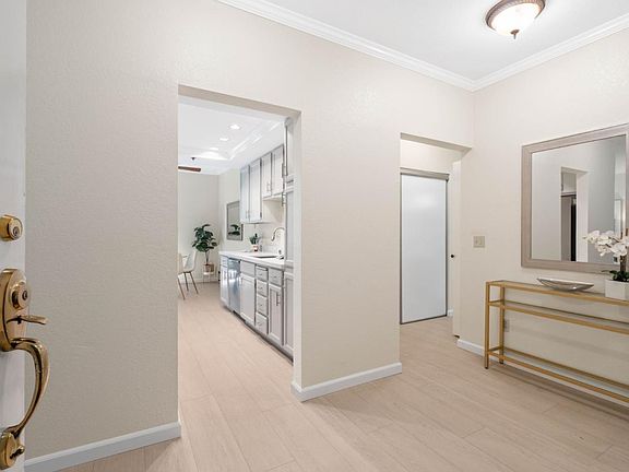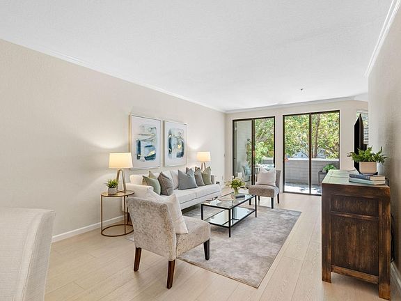 Luxurious executive-style condo in an unbeatable location with top-rated Cupertino schools, including Homestead High, all within walking distance. Situated on the border of Los Altos, Homestead/Foothill Crossing shopping center is right outside your door, so you can easily walk to Trader Joe's or grab a coffee. This bright end unit features crown molding, luxury vinyl plank floors, fresh paint, double-paned windows, in-unit laundry, and an AC unit. The updated kitchen boasts stainless steel appliances, quartz countertops, ample cabinet space, and a dining area overlooking the peaceful community courtyard. The spacious main bedroom offers an ensuite bath with an enclosed shower over tub, two closets, and new carpet. The second bedroom includes a large closet, and the remodeled second bathroom also features a shower over tub. Additional amenities include two gated parking spaces with storage, elevator access, a community pool, hot tub, and clubhouse. Enjoy easy access to HWYs 85, 280, Caltrain, DeAnza College, and major employers like Apple and Kaiser, with downtown Los Altos and Sunnyvale just 10 minutes away. Don't miss this rare opportunity!