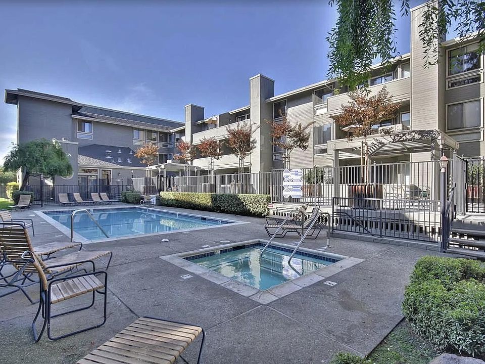 Spacious and bright 2 bed/2 bath condo on the first floor at Woodspring in Cupertino. Bordering Los Altos, this condo is one the largest units in the building at 1,684 sq ft. It has two double ensuite masters, both with full bathrooms, and includes: hardwood floors throughout, fireplace, heat and AC, remodeled kitchen, washer/dryer in-unit, spacious bedrooms, spacious living room, and a large balcony with storage that looks out to the grassy courtyard. Other features include: pool, trash chute, and 3 parking spots in the attached and gated garage plus an abundance of guest parking. This is a great location close to freeway access, around the corner from shops (Trader Joes, Starbucks, Pete's, Rite Aid, UPS, Foothill Market), restaurants, and Cupertino schools (West Valley Elementary School, Cupertino Middle School, Homestead High School, William Faria Elementary School, De Anza College, Foothill College). This is a smoke-free home and community. Up to 2 pets are welcome! The monthly base rent is $3,800 plus PGE (garbage and water are already included in the base rent). The application fee is $29, and renter's insurance is required.