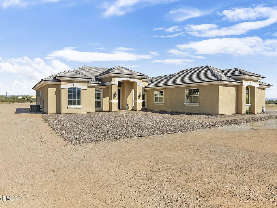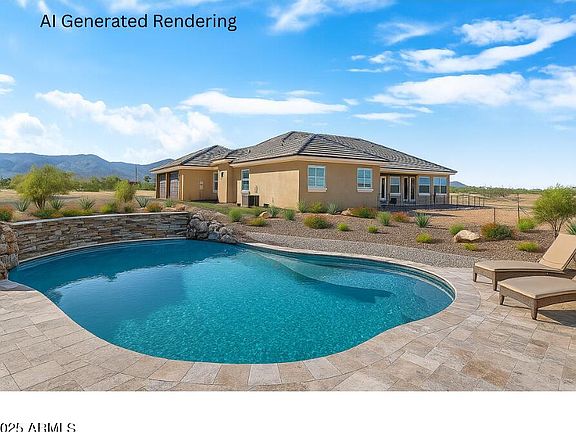 Custom Surprise Estate -The Ultimate Desert Retreat. This stunning 3-bed, 3-bath plus den custom home on 2.5 acres offers privacy with panoramic mountain and desert vistas. High ceilings and sun-filled spaces create openness. The gourmet kitchen is a Chef's Delight for endless cooking and entertaining. The masterful design extends throughout the entire home with top-notch design elements and features that are both functional and timeless! The luxurious primary suite with sitting area and custom dressing closet is an inviting retreat! The opulent ensuite features a claw tub with mountain views! Backyard is a perfect opportunity to design your personal equestrian oasis, add a pool and casita, or all of the above! With 2.5 acres the possibilities are endless. You can split and sell too!