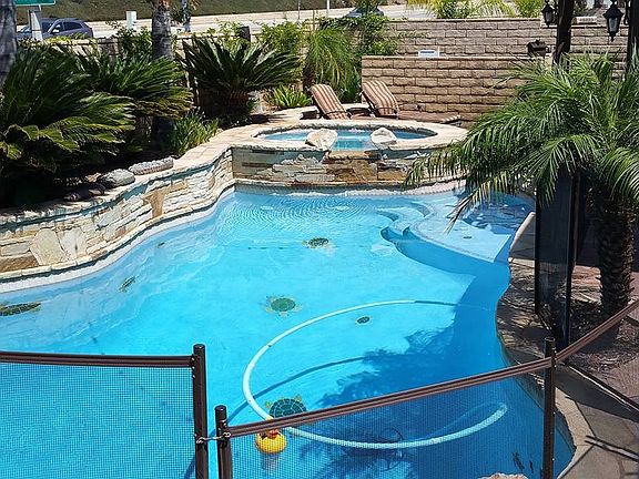 NO HOA and NO MELLO-ROOS!!! HIGH vaulted ceilings with large custom crown molding. In the kitchen, granite countertops, upgraded stainless steel Kitchen Aid appliances, island, and walk-in pantry. Private seating area in the master and a massive walk-in closet. Sparkling pool with custom stonework. The garage is fully-finished w/epoxy floors, recessed lighting, custom cabinetry (all cabinets are included), and a hidden silent garage door opener. No expense spared; fully renovated; wood-look/porcelain floors, wide-blade plantation shutters, solar panels (save a lot of money), 2-tone paint, custom in-ceiling sound, and recessed lighting.