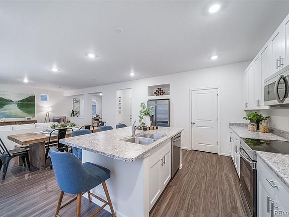 This home has plenty of curb appeal featuring a multi-textural exterior, front porch, and 5’ privacy fencing. The main level is bright with oversized windows, 9’ ceilings, home-office flex space, and an expansive “heart of the home” great room. Enjoy designer LVP flooring, Shaw carpeting, and Sherwin-Williams paint throughout. The kitchen is complete with a dining island, designer countertops, stainless-steel sink, and large pantry. The spacious primary suite offers a large walk-in closet, double vanity sink, and a tiled spa shower. The 2nd floor also features a laundry room and 3 additional bedrooms with large closets.