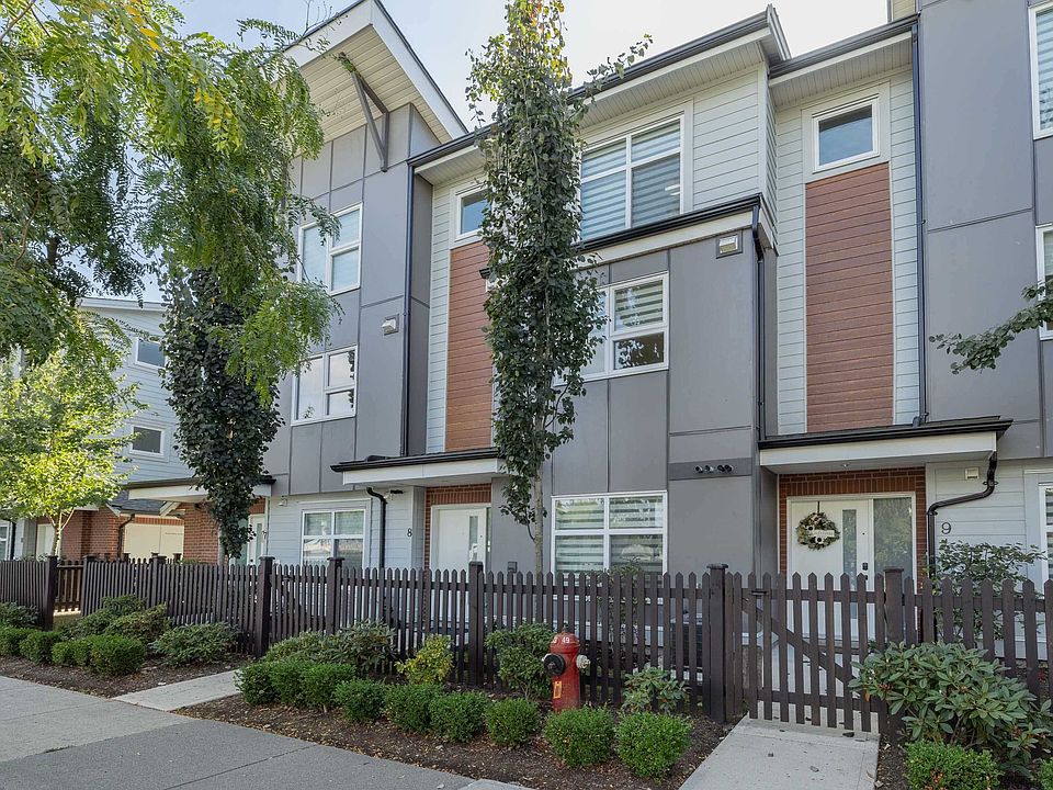 Gorgeous 4 bedroom, 4 bathroom townhome located in Murrayville’s Station 48. Open concept main floor boasts 9’ ceilings, wide plank laminate flooring, spacious living area w/ feature electric fireplace, space for computer/study area, glass sliding door to large south-facing deck w/ gas BBQ outlet, & adjacent dining area. Gourmet kitchen w/ white shaker cabinetry, peninsula w/ breakfast bar, stainless appliances, quartz counters, & marble tile backsplash. 2-pc powder room. 3 bedrooms up including the primary /w walk-in closet & 4 pc ensuite. Full 4-pc bath, & laundry. Lower level w/ 4th bdrm, 3 pc bath, & double car garage opening to 2 add’l driveway parking spaces. On-demand hot water, & central air conditioning! Easy walk to WC Blair Recreation Centre, parks, schools, shopping, & cafés.