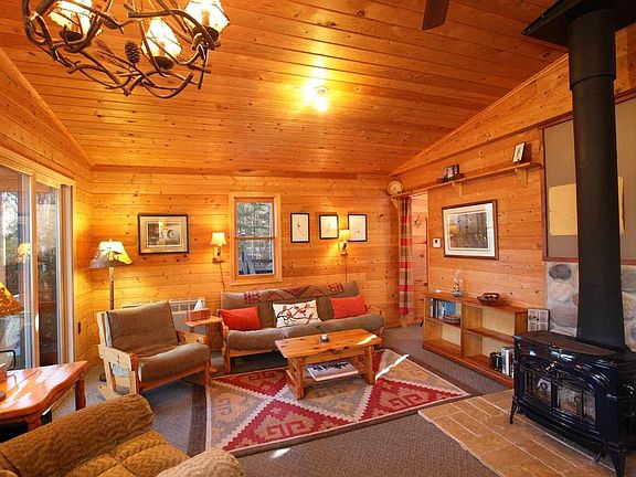 Furnished Yr Rnd Knotty Pine Cabin, Set On 1.7 Acres Adjoining Hundreds of Acres of Public Lands & 205 Ft Sandy Swimming Shoreline, Wolf Lake. Easy access to Mesabi Bike Trail. Just 10 Mi SW Of Ely—shorter commute from the south as this is on the way to Ely. Wolf is a 145 acre lake , 28 ft deep, stocked w/walleye & offering excellent walleye & bass fishing. Updated & well maintained, built 1991, 576 SF 2B/1 NEW BTH yr rnd main cabin plus 1BR summer guest cabin connected by deck. Kitchen w/L open to vaulted livingrm w/fireplace front wood stove, propane wall heater & glass door to lakeside screen porch. Gentle steps to level lakefront firepit area & dock. Timber frame woodshed/patio. Compliant septic. Dock. Vintage sauna guest cabin currently used for storage. Includes 1976 14 ft Sylvan boat, Yamaha 8HP motor & Sport by Spartan trailer & Old Town kayak!