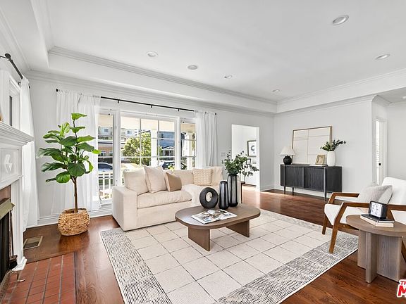 Timeless Traditional with City Views in Prime Westwood! Nestled on a tree-lined street in one of West Los Angeles' most desirable neighborhoods, this elegant two-story traditional home blends classic architectural charm with modern livability. The inviting facade, accented by a charming front porch, brick walkway, and manicured landscaping, sets the tone for what awaits inside an exceptional home designed for both everyday comfort and sophisticated entertaining. Step inside to a bright and airy interior, where natural light pours through large windows highlighting rich hardwood floors, high ceilings, and timeless millwork throughout. The formal living room, anchored by a stately fireplace, opens seamlessly to the front porch, perfect for morning coffee or evening relaxation. The heart of the home is a generous open-concept family room and kitchen, where French doors open wide to the lush backyard, creating an effortless indoor-outdoor flow. The chef's kitchen features a center island with seating, stone countertops, custom cabinetry, and top-quality appliances, while a sunny breakfast nook enjoys views of the garden and mature trees. Upstairs, the serene primary suite is a true retreat, complete with vaulted ceilings, a private balcony to enjoy captivating skyline views of Century City's glittering towers framed by swaying palms, a fireplace, oversized walk-in closet and an ensuite bath with dual vanities, soaking tub, and walk-in shower. Two additional bedrooms upstairs with their own baths and a private downstairs bedroom offers versatility for family, guests, or a home office. The backyard is an entertainer's dream, private, lush and peaceful, with multiple sitting areas, an expansive lawn, and a detached garage. Located just moments from Westwood Charter Elementary, Century City and UCLA, this home offers the perfect blend of tranquility and city convenience, a timeless residence in a truly special setting!