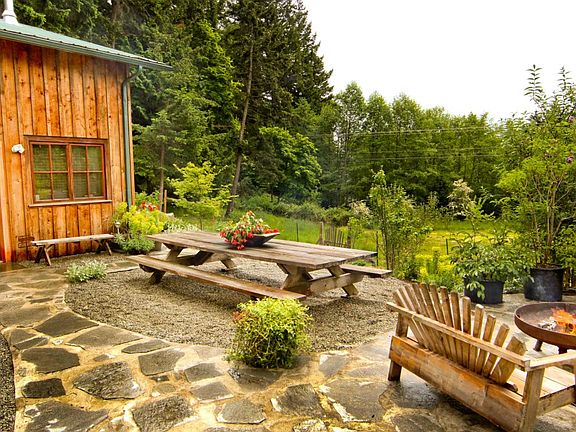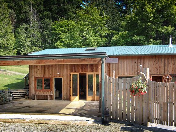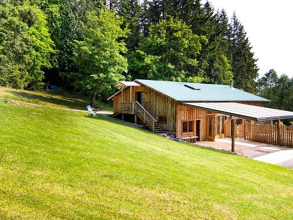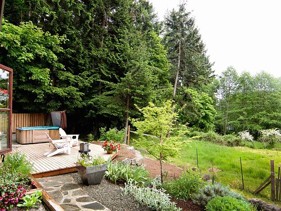 West Sound farm on 7.7 acres adjoining Turtleback Preserve. Main hs exudes rustic charm with local cedar board/bat siding, fir floors, stone paths, hot tub & outdoor shower.Shop attached to main house, office/den up. 1 bedroom view guest hs on upper site. Outbuildings: 4 bay Texmo pole barn, cabin w/ bath/cook hs overlooking pond & sound, chicken coop w/ fenced yard, garden stand on Deer H. Rd., fenced gardens, stream & pond, private well. Seller financing with 50% down.Transient rental permit.