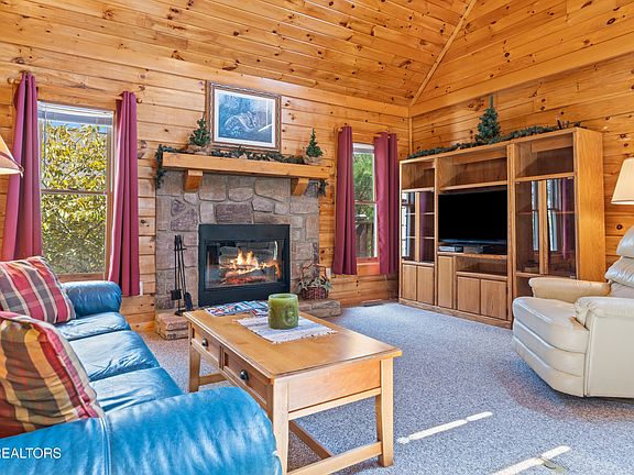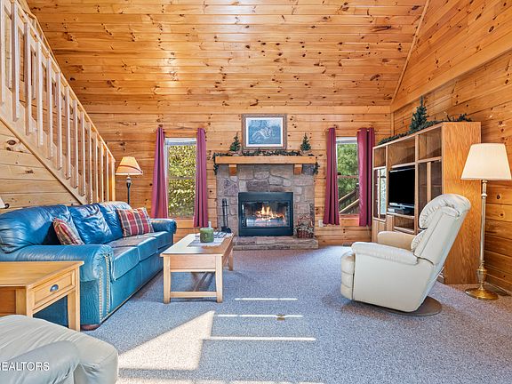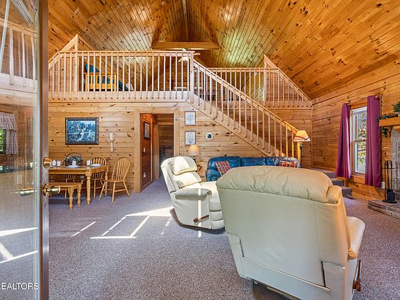 Home has been very well maintained and loved. The main level offers 2 large bedrooms, 2 bathrooms, very spacious open concept living area with a wood burning fireplace. that can be converted to gas. The upper level is currently used as a recreation area but could be used as a third bedroom/bonus room. It has a private outdoor balcony to sit and enjoy. Owner has stained the decking every year and has stained cabin twice since owning. HVAC system replaced in 2021. Privacy won't be an issue for the hot tub, it is tucked in the back area of the cabin which is not facing any other cabins. Cabin is only 6 minutes away from Soak Mountain and close to all the other attraction that the area has to offer.