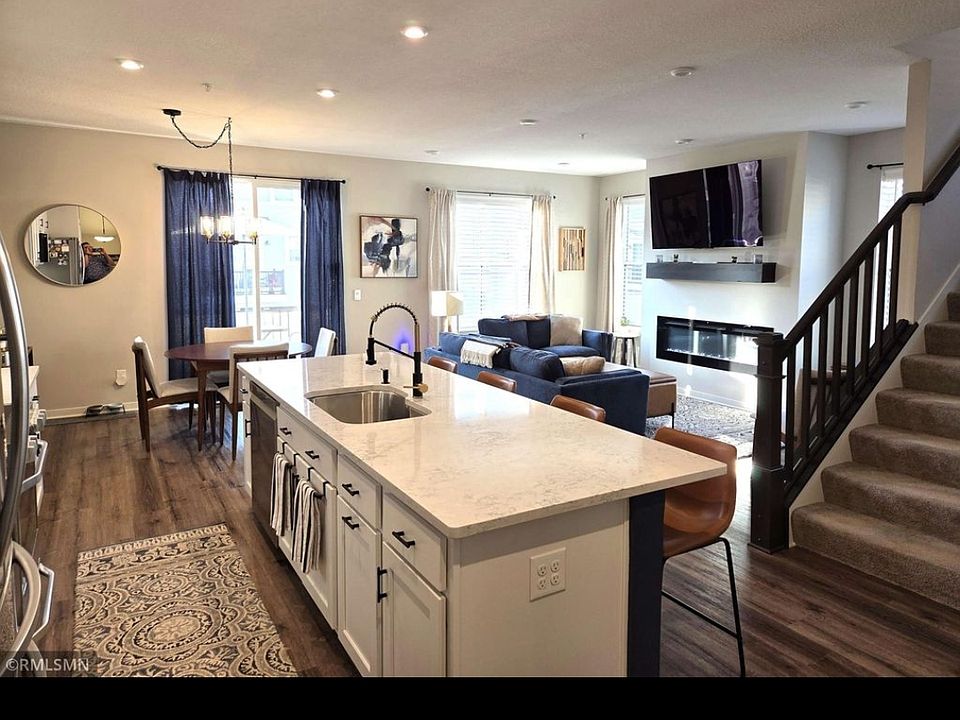 Enjoy this 3-story townhome with a beautiful bright open-concept floorplan. Tons of storage under both stairwells and built in shelves in garage.