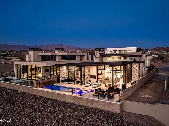 This exceptional boaters paradise, nestled within the prestigious 24/7 guard-gated community of Riviera Lake Havasu, redefines modern luxury living with an open-concept design that showcases unobstructed lake views and an abundance of natural light. Impeccably crafted, the home features state-of-the-art Sub-Zero & Wolf appliances, including an exclusive 99 inch L'Atelier Paris designed French kitchen range, a striking LED backlit crystal Onyx kitchen island, three fireplaces, and interior glass pivot doors. The floor plan offers a spacious loft + office, two laundry rooms, and cutting-edge technology including a Savant Smart Home system, camera surveillance, and Lutron automated lighting & blinds. Custom finishes abound with metal, stone, tile, and Venetian plaster accents, while a hydronic radiant pool & spa with sweeping views of the Havasu Riviera Marina, a fully outfitted outdoor kitchen, dining and seating areas with fire pits and TV's perfect for entertaining and watching breathtaking sunsets. Whether seeking a peaceful weekend getaway to disconnect from the demands of everyday life or a space to create lasting memories with family and friends, this home offers the ultimate retreat. Located just under an hour's flight from both Los Angeles and Phoenix, Lake Havasu is one of the most sought-after destinations along the Colorado River, making this unparalleled property the perfect escape to unwind and enjoy life's finest moments.