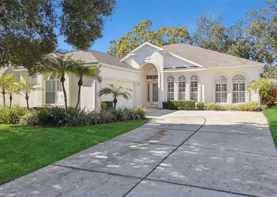 One or more photo(s) has been virtually staged. This home is the popular St. Laurent model located on the 12th hole of the Championship Kings Ridge golf course. Kings Ridge is a 55+ gated golf community nestled in the rolling hills of Clermont. Enjoy peaceful views of the course from the large back screened lanai. Enjoy peace of mind with the roof replaced in 2023. This home is 1,834 Sq Ft with 3 beds, 2 baths and 2 car garage. It’s an open floor plan with no wasted space. It features a galley style kitchen, formal dining room and separate breakfast nook. The primary bathroom has a walk in shower, separate garden tub, dual sinks, vanity and private water closet. Off the ensuite primary bathroom is a large walk in closet. Dedicated laundry room with washer/dryer hookups. Enjoy the Kings Ridge Royal life style in the multi-million clubhouse with 3 heated pools, spas, tennis & pickle ball courts, billiards, shuffle board, shows, Bingo, cards and clubs galore. The monthly maintenance fees include: lawn maintenance including trimming of shrubs, care of irrigation system & irrigation water, Internet, TV cable & phone thru Opticaltel, maintenance of roads and outside painting of home every 7 years. Take your golf cart to the Kings Ridge Plaza where you can do your grocery shopping, banking or dine out. Approximately 30 minutes to Disney Parks or Universal Studios.