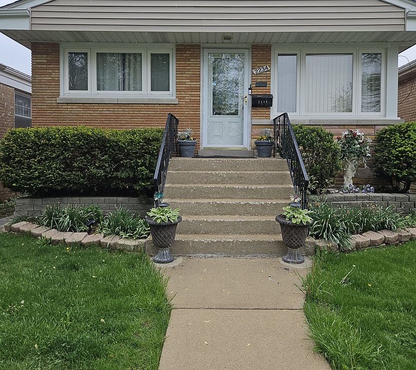 This spacious brick three bedroom home is a must see. Freshly painted and ready to move in. Spacious finished basement with seperate bathroom and full kitchen was recently updated and would make the perfect family play area. Large storage area and laundry also included. 1st floor has 3 bedrooms and so much potential. Upper level has newer windows and recent roof tear-off 2021. Newer furnace and hot water heater. 2 car garage. Ceiling fans throughout. Central A/C. Minutes from the Riverside Mall, Costco and Cermak Harlem Plaza shopping center. Relative living in basement.