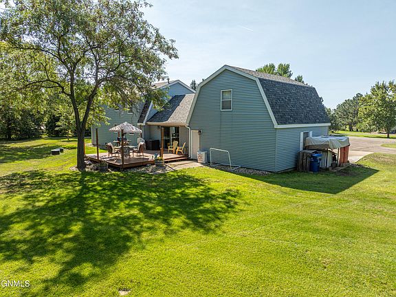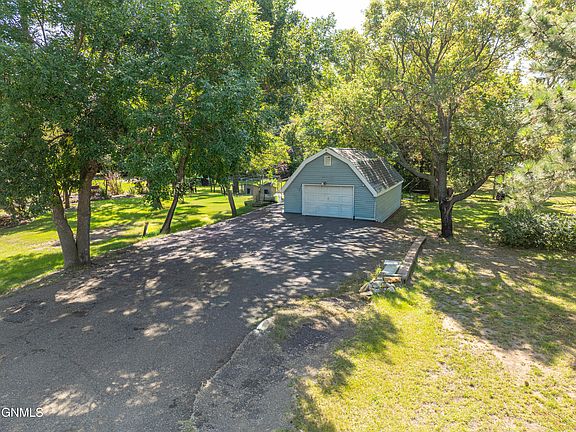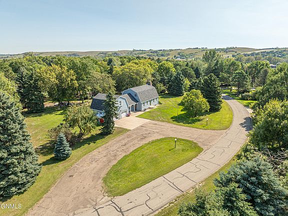 You won't want to miss this unique and charming home nestled on a beautifully landscaped, private lot located just minutes from Bismarck. The main floor offers tons of living space and all of the walls were freshly painted in 2025! The main floor family room also has new laminate flooring and the living room has new carpet and a wood burning fireplace for those chilly nights. The large kitchen has tons of great work space and cabinetry and the spacious dining room is perfect for gathering with friends and family. There is even a half bath on the main floor for guests!