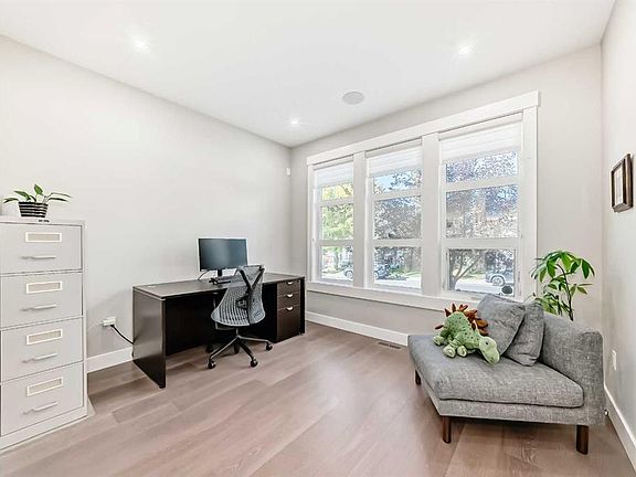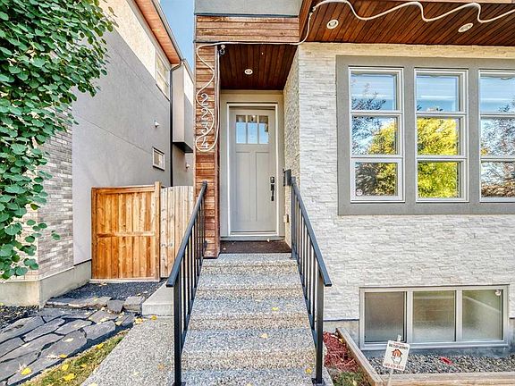 Located in Calgary’s desirable Killarney community, this well-maintained home offers a fantastic open-concept floor plan with stylish design details throughout. The main level features soaring ceilings and wide-plank hardwood floors. At the front, a versatile flex room can serve as a home office, den, or dining room. The chef’s kitchen is complete with sleek cabinetry accented by warm wood tones, herringbone tile backsplash, high-end appliances, and a large central island. The adjacent living room showcases a modern fireplace flanked by floating shelves and large windows with backyard views. A convenient side entrance provides access to the yard and double detached garage. Upstairs, three spacious bedrooms and two full bathrooms include a stunning primary suite with wall paneling, built-ins, vaulted ceiling, walk-in closet, and a luxurious ensuite with a glass shower, soaker tub, dual vanities, and a custom walk-in closet. The upper level offers both comfort and privacy for family or guests. The fully finished basement includes a family room with media cabinets and a wet bar, plus a fourth bedroom. Outside, the low-maintenance yard features a private deck with screens. Additional highlights include central A/C, central vacuum with attachments, alarm system, built-in speakers, in-floor heating on the lower level, and pet-friendly turf in the backyard. Ideally located near top-rated schools, boutique shops, restaurants, parks, pathways, and the Killarney Aquatic Centre, with quick access to 17th Avenue and downtown. This home offers both convenience and an exceptional lifestyle.