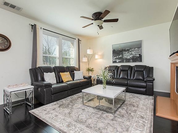 Stunning 3 bedroom, 3 bath townhome w 1918 sq/ft and LOFT built in 2014. Located on a coveted corner and facing west for Sunset views! Generous Living & Dining room ideal for entertaining. Gorgeous Kitchen with breakfast bar, stainless steel appliances, giallo fiorito granite countertops and espresso cabinets. Elegant Master Suite with ample walk-in closet, Master Bathroom with soaking tub, separate stall shower and his & hers sinks. Family-sized LOFT currently used as Home Theater. Good sized secondary bedrooms with shared bathroom. 2 car attached garage with direct access and fronts to street for easy parking. Community pool, spa and park. Highly rated school district. Close proximity to parks, shopping and dining. Water is included in the HOA. Turn-key just move in and relax!