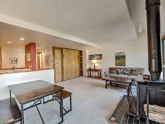 Quiet and affordable Keystone Village Studio. This spacious, end-unit studio has an open floor plan with extra windows. It includes a full kitchen, a great room with a murphy bed and pull out sofa bed, a large bathroom and a lovely window seat to enjoy your morning coffee with the sun streaming in. Just a short walk to Keystone Lake, conference center, village shops, restaurants, skiing, skating, bike trails, and hiking. Sleeps 4 comfortably, and is available for STRs. It's very quiet, with the pool and hot tub just steps away. Owners have one parking space in the heated garage, along with additional common surface parking. This is priced to sell.