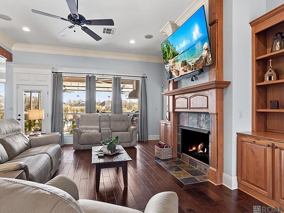 Welcome to this stunning home in Beaver Creek Golf Community, located within the top-rated Zachary Community School District. With a spacious layout and custom features, this home offering 4 bedrooms + Office + Bonus + POOL + Outdoor Kit, is perfection. As you step inside, you'll be greeted by warm wood flooring throughout, high ceilings, & a inviting living room. The living room is perfect for gathering, with a warm fireplace, custom built-ins, and large windows that fill the room with natural light while offering views of the beautifully landscaped backyard, pool, & golf course. The formal dining room provides the perfect space for hosting family gatherings or dinner parties. The chef’s kitchen is the heart of the home, featuring brick flooring, dual islands, a gas cooktop, dual wall ovens, granite countertops, a pantry, and ample cabinetry. Adjacent to the kitchen, the keeping room with its brick flooring and second fireplace offers a cozy, casual space for family relaxation or additional entertaining. A dedicated office provides a quiet and functional workspace for remote professionals or students. The primary suite is a private retreat, complete with an en suite bathroom featuring double vanities, a soaking tub, a walk-in shower, and a spacious walk-in closet. Two additional bedrooms are located downstairs, offering convenience and versatility. Upstairs, you’ll find a large flex space/sitting area, the fourth bedroom, and a full bathroom, providing additional privacy and options for a guest suite, playroom, or media room. Step outside to your personal oasis. The backyard is an entertainer’s dream, featuring a beautiful pool, an oversized patio, a fully equipped outdoor kitchen—perfect for grilling and relaxing with family & friends. The lush landscaping and golf course views provide a serene and private setting for outdoor living. Additional highlights include a two-car garage with a 3rd bay for storage, no carpet throughout, & a community park & tennis courts.