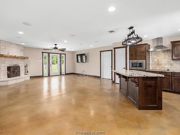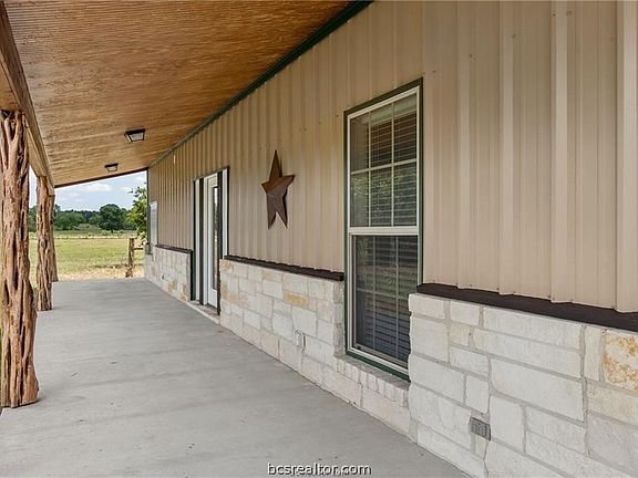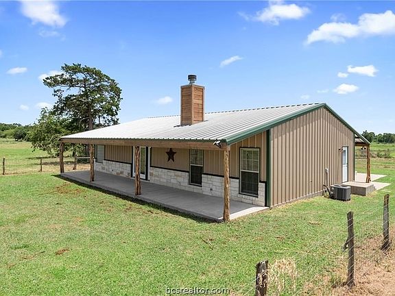 A rare find and horse lover's dream! This rural, unrestricted 3.64 acres accompanies a 2 bedroom 2 bath metal home with a 4-stall barn. Accessed through an automated gate, this metal home has all the country charm with cedar accents. Featuring a covered front porch, covered back patio, plus a fire pit inside the fenced in yard making living life out here a breeze. The interior boasts an open floor plan featuring a cozy stone fireplace along with stained concrete floors and granite counter tops throughout. The bedrooms and bathrooms are extremely spacious. The primary bathroom feels like a retreat displaying a tiled walk in shower, soaking tub, and double vanity. Property has perimeter fenced and two road frontages for access. Prime location in Millican only minutes from South College Station. Schedule your private tour today and make this your next home sweet home!