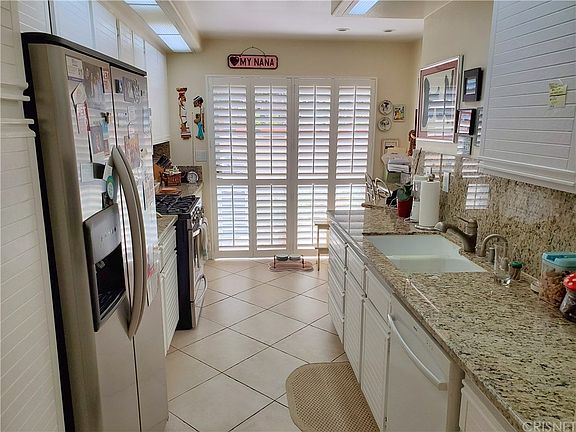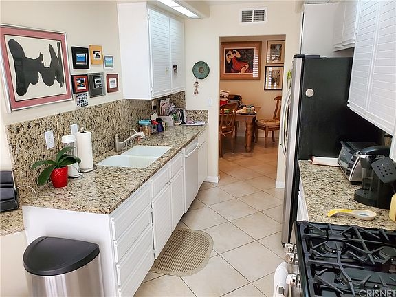 Reduced! Fabulous end unit in Beautiful Cal West Community* Surrounded by tons of plantsyou enter the iron gate to the private tiled patio with BBQ gas hook-up. Welcomed by dramatic vaulted ceiling & tiled floors this spacious 2 bedroom plus a loft with close to 1400 sq.ft. of comfort. Cozy living room w/a gas fireplace, plantation shutters & sliding door access to patio plus formal dine w/recessed lighting. Granite countertops in kitchen w/ anew free standing 4 burner gas stove & grill. Recessed lighting & a Bosch dishwasher w/a brand new motor. Hot water dispensor & breakfast area w/plantation shutters & sliding door access to front patio. 1/2 bath & laundry facilities downstairs. Upstairs offers a nice loft w/acess to private balcony & full bath. Extra bedroom has private access to balcony plus mirrored wardrobes & high ceilings. The master suite is very private & offers high ceilings, custom built in cabinetry & plantation shutters plus a private full bath w/walk in closet, dual sinks & jacuzzi tub. 2 car attached roll up electric garage w/tons of custom built ins. Very private end unit. The community offers 2 gated separate pool areas w/spas & BBQ's, hiking trails and dog walking trails. Only 1 way into this fabulous community.