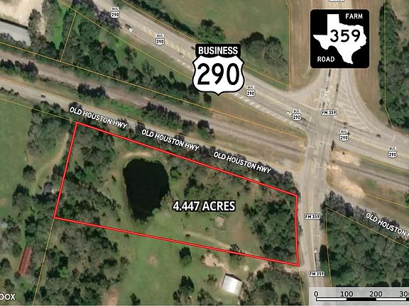 Prime +/- 4.447-acre corner tract located at the intersection of FM 359 and Old Houston Highway, just off Business 290 in Hempstead, TX. This site offers exceptional frontage and visibility along two major thoroughfares in a growing commercial corridor. Nearby developments include the H-E-B Distribution Center, RCR Rail Co. Industrial Park, and future retail and residential expansion throughout Waller County. Convenient access to US-290, Highway 6, and FM 1488 provides direct routes to Houston, College Station, and Austin. The property features open terrain with scattered trees and a pond, offering versatile use potential. Traffic counts exceed 40,000 vehicles per day along the US-290 corridor (per TxDOT). Buyer to verify utilities, zoning, and use restrictions. Ideal location for commercial, mixed-use, or investment purposes.