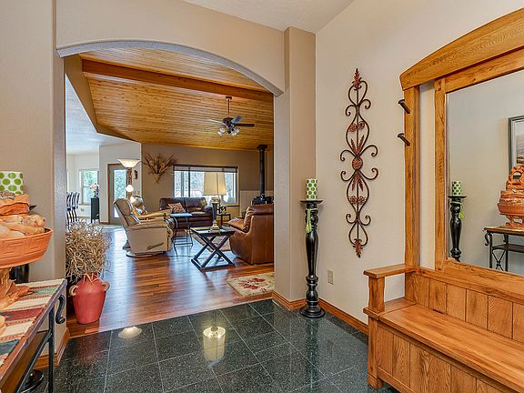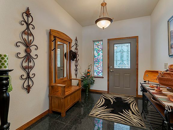 Beautifully landscaped single level home on nearly five acres. Granite, tile & all the amenities you would expect in a quality home. Large heated shop with a full bathroom & shower, heated greenhouse, fenced dog kennel & run. Fully fenced, paved driveway with RV parking & hookups. Water feature in front & Koi pond out back. Sprinklered lawn & curbed landscaping.