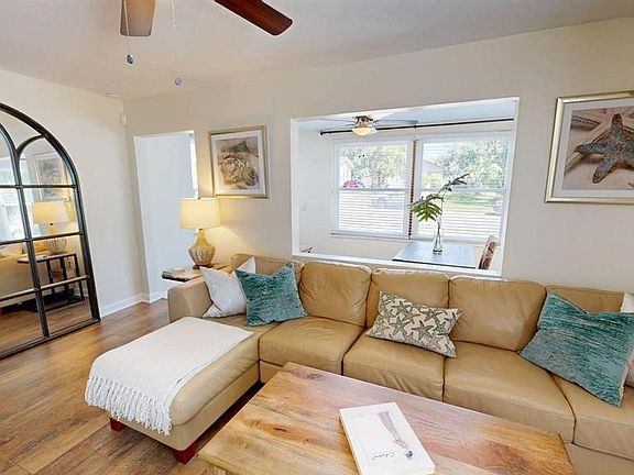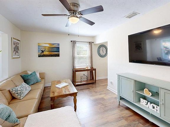 Coastal Comfort Meets City Convenience – Fully Furnished, Turnkey Home Just Minutes from the Beach! Discover your perfect Florida escape in this beautifully remodeled, fully furnished 3-bedroom, 2-bath home—just 15 minutes to the beach and under 10 minutes to vibrant Downtown St. Pete. Inside, you’ll find bright, coastal-inspired interiors and a thoughtful split-bedroom layout. Primary suite offers a private retreat with a spa-style en-suite bath. Two additional bedrooms, each with queen beds, smart TVs, and stylish furnishings, share a designer-updated bathroom. The remodeled kitchen features stainless steel appliances, quartz countertops, and a chic backsplash—compact yet highly functional. Barnwood Spill Defense laminate flooring runs throughout the home, adding warmth and durability. Enjoy peace of mind with impact-resistant windows and the bonus of being in a non-flood zone. Step outside to a private backyard oasis—complete with cozy seating, pavers, sunshades, ambient lighting, and a fire pit for unforgettable evenings. Additional features: Two-car garage Convenient access to beaches, dining, shopping, and Tampa International Airport (30 mins) NO HOA! Whether you’re seeking a stylish primary residence or a vacation getaway, this home offers a comfortable coastal lifestyle close to everything you need. Schedule your showing today and start living the Florida lifestyle you’ve been dreaming of!