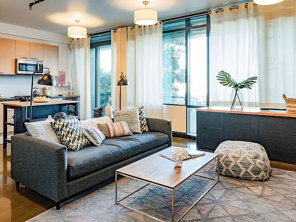 Expansive windowsIndustrial-inspired finishesHigh ceilings