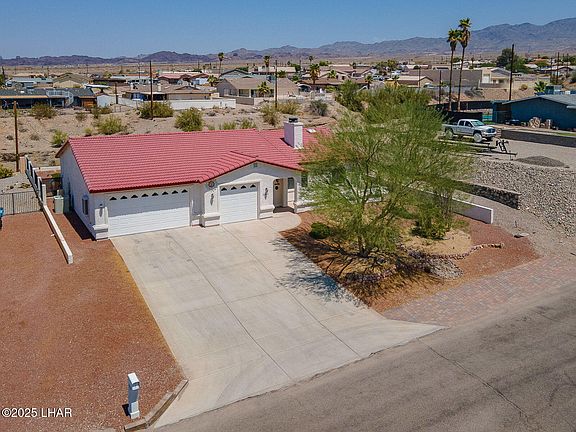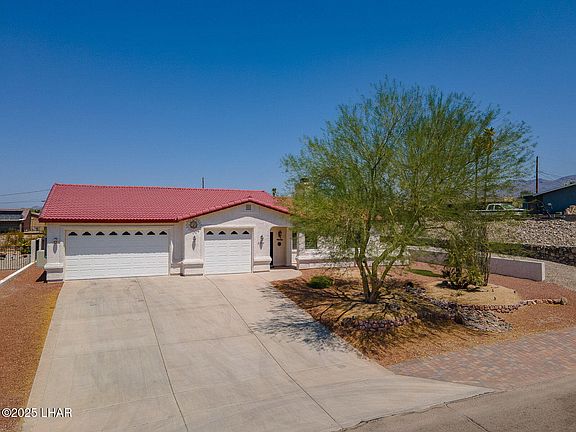 This gorgeous Lake Havasu City home is a must-see! It features a 3-car, boat-deep garage with 4 parking spaces, including an impressive 41+ foot deep bay—perfect for your boat, off-road toys, or extra vehicles. Out back, your private oasis awaits with a sparkling pool featuring a large baja shelf and beautiful waterfall features, an oversized covered patio, and a built-in outdoor kitchen for year-round entertaining. The property backs to a wash for added privacy, while the front offers scenic lake views to enjoy from the comfort of home. Inside, the 1,599 sq ft split floor plan offers 3 bedrooms and 2 bathrooms, with a spacious living room anchored by a cozy fireplace and open to the kitchen and dining areas. With no HOA and the flexibility to use as a full-time residence, vacation getaway, or income-producing short- or long-term rental, this home truly has it all.
