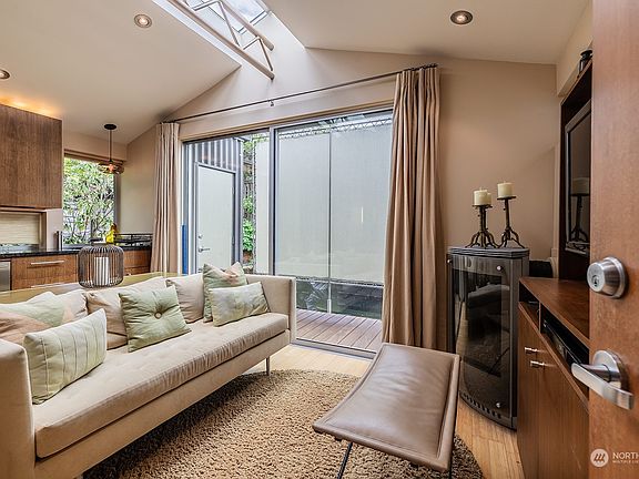 Perfect floating studio in the well known and admired DOX community in Eastlake. High quality finishes everywhere you look and a smart floorplan. Low maintenance city retreat. Exterior is wrapped in newly refinished clear cedar siding & ironwood decks. Kitchen has you covered with gorgeous wooden cabinetry, a Sub-Zero and a Wolf range. It's a studio, but there is room to leave the murphy bed up or down for efficient use of space. Plus the gas fireplace and vaulted ceilings elevate the spaces. Marble & ceramic tiled bath has beautiful fixtures. Amazing location, steps to Pete's grocery, Eastlake restaurants & easy commute to downtown & Eastside. Shared parking, room for your water toys, and I small boat moorage with co-op permission.