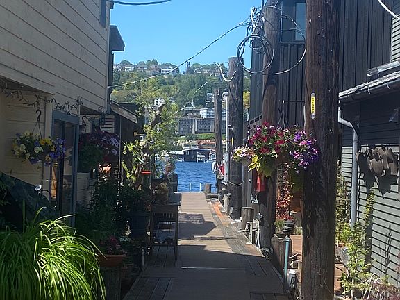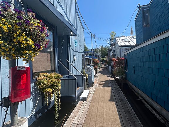 This one-of-a-kind floating home was custom-designed to take advantage of its unique location with an incredible 180-degree lake, mountain, and city view. It has a spacious, cohesive modern design with multiple levels, vaulted ceilings, walls of glass, and two decks, one at water level, and the other off the top floor with a sweeping view.