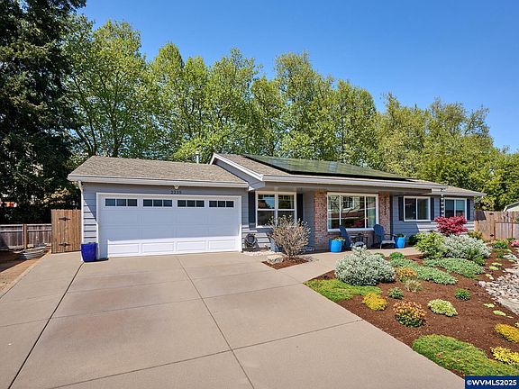 Tastefully updated and well-maintained home in a desirable South Salem neighborhood! Close to Schirle Elementary & Sprague. Vaulted family room with ceiling fan, gas fireplace & slider to large patio area. Well appointed kitchen with eating area. Formal dining room too! Vaulted primary suite with slider to back deck. Large pantry/storage area off utility room. Very cute, fenced, backyard with fenced garden area! Low maintenance yard. 1 year old solar panels for economical electricity are paid off.
