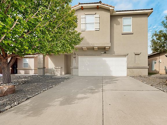 Beautiful and spacious, this 4/5 bedroom 3093 SF home in Cabezon is ready for new owners. New HVAC system (2 furnaces and 2 refrigerated air units), new hot water heater, freshly painted throughout and new carpeting in the upstairs bedrooms. Main living/great room features beautiful wood beam accents on the ceiling and a custom gas fireplace. Downstairs office/additional bedroom. Upstairs includes a large loft for additional living/flex space, the primary suite with double sinks, shower and soaking tub in the primary bath and a walk-in closet, plus 3 additional bedrooms. Oversized 2-car garage with tons of space for storage or a workshop area. The private backyard features easy-care turf ,a covered patio with a pergola and fenced-in dog run.